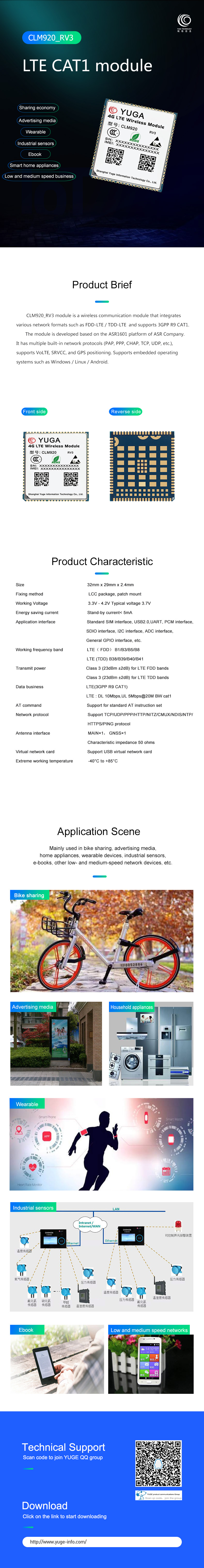 CLM920_RV3 module is a CAT1 wireless communication module that integrates multiple network formats of FDD-LTE / TDD-LTE and supports a maximum downli