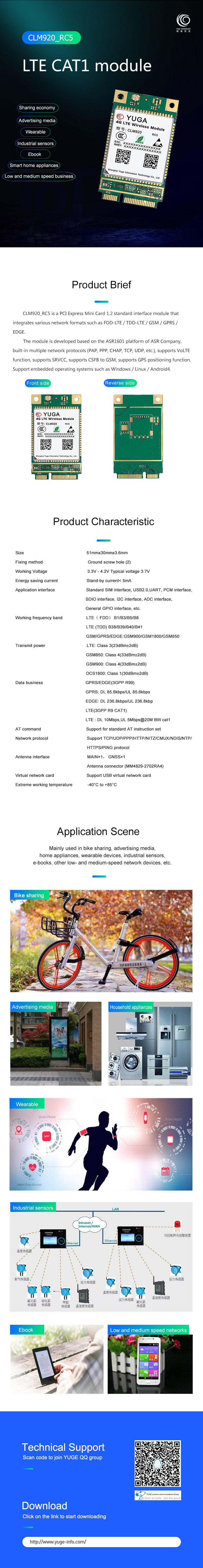 CLM920_RC5 is a PCI Express Mini Card 1.2 standard interface module that integrates various network formats such as FDD-LTE / TDD-LTE / GSM / GPRS / EDGE.The module is developed ba