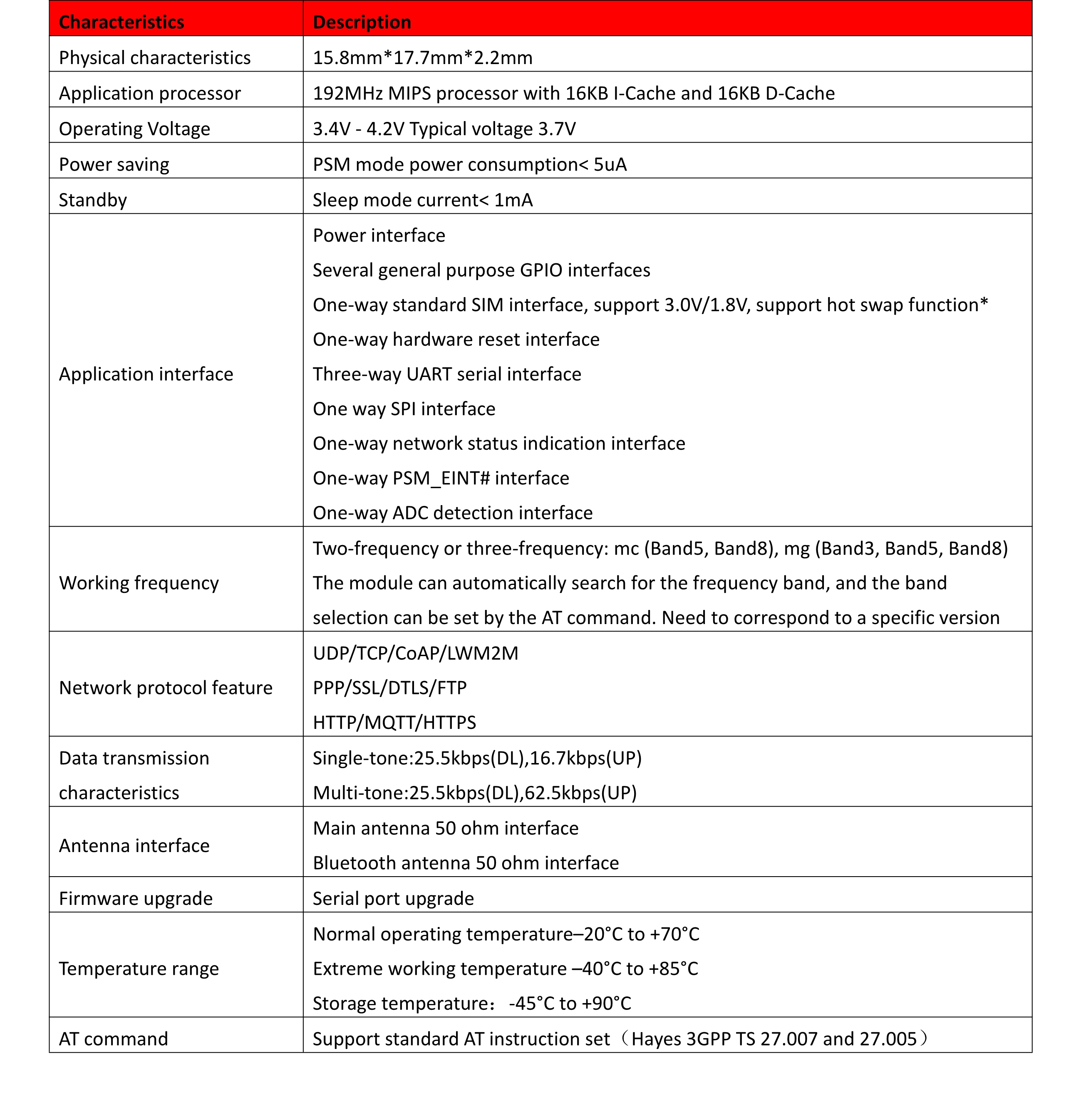 The LPM2100 mg module is a two-band NB-IOT IoT wireless communication module that supports Band3, Band5, and Band8. Generally used mainly for low-power data transmission services. Meet the 3GPP Release 13 standard. The module has a total of 44 pins. With an ultra-small size of 15.8mm*17.7mm*2.2mm, it can meet almost all M2M needs.