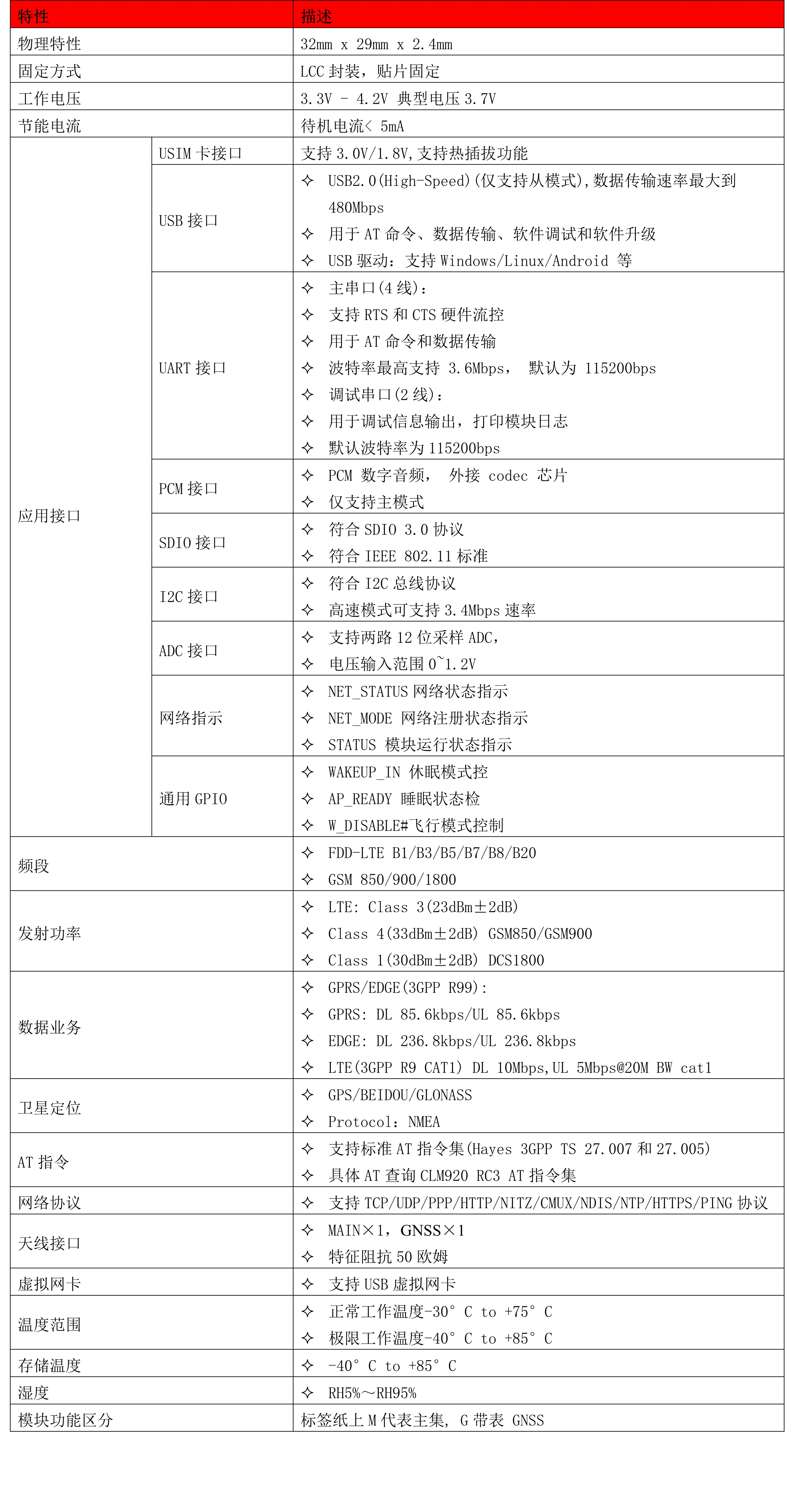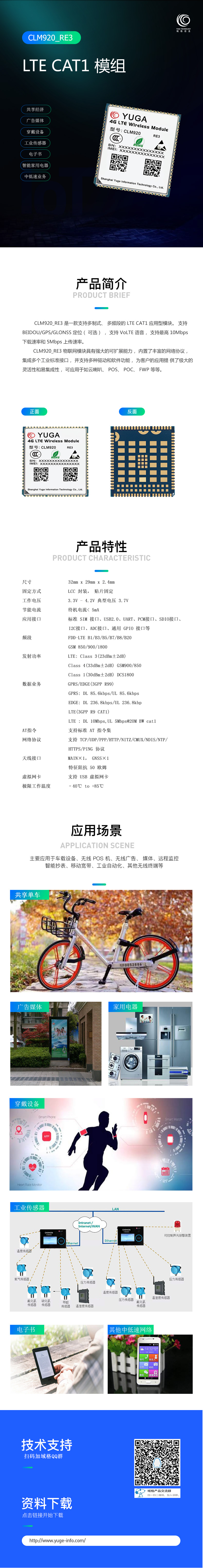 CLM920_RE3 是一款支持多制式、 多頻段的 LTE CAT1 應用型模塊。 支持 BEIDOU/GPS/GLONSS 定位( 可選) , 支持 VoLTE 語音, 支持最高 10Mbps 下載速率和 5Mbps 上傳速率。CLM920_RE3 物聯網模塊具有強大的可擴展能力, 內置了豐富的網絡協議, 集成多個工業標準接 口, 并支持多種驅動和軟件功能, 為客戶的應用提 供了極大的靈活性和易集成性, 可應用于如云喇叭、 POS、 POC、 FWP 等等。