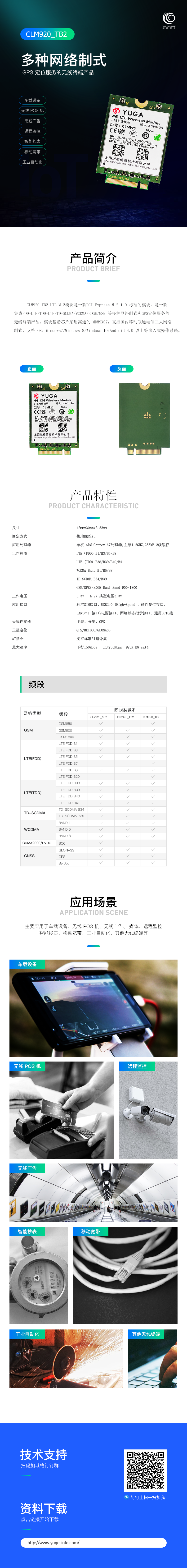 CLM920_TB2 LTE M.2模塊是一款PCI Express M.2 1.0標準的模塊,是一款集成FDD-LTE/TDD-LTE/TD-SCDMA/WCDMA/EDGE/GSM等多種網絡制式和GPS定位服務的無線終端產品。