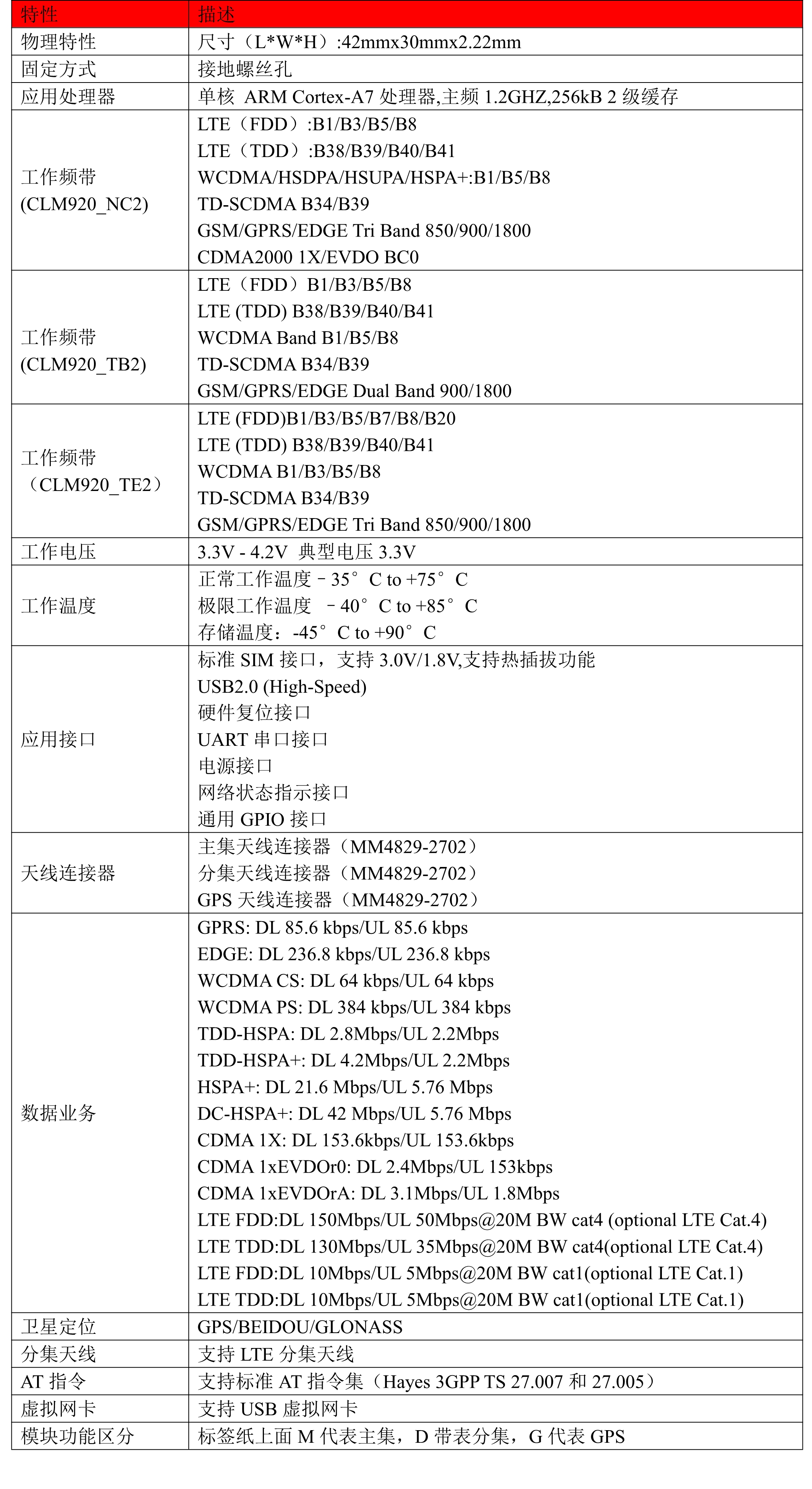 CLM920_NC2 LTE M.2模塊是一款PCI Express M.21.0標準的模塊,是一款集成FDD-LTE/TDD-LTE/TD-SCDMA/WCDMA/EVDO/CDMA/EDGE/GSM等多種網絡制式和GPS定位服務的無線終端產品。
